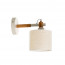 Φωτιστικό απλίκα σε λευκό χρώμα με ξύλινες λεπτομέρειες και μπεζ υφασμάτινο καπέλο