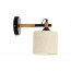 Φωτιστικό απλίκα από μαύρο μέταλλο, ξύλινες λεπτομέρειες και μπεζ υφασμάτινο καπέλο