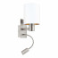 Μοντέρνα απλίκα με λευκό καπέλο καί χρώμιο μέταλλο ιδανική για τοποθέτηση σε κρεβατοκάμαρα.Με δεύτερη πηγή φωτισμού σποτ που βοηθάει στο διάβασμα