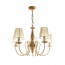 Vintage πεντάφωτο φωτιστικό σε απόχρωση μπεζ πατίνας με λευκά υφασμάτινα καπέλα