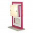 Μοντέρνο πορτατίφ με βάση από χρώμιο, πλαίσιο από plexiglass και τετράγωνα γυαλιά αμμοβολής εκατέρωθεν του πλαισίου.