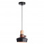 Κρεμαστό μοντέρνο φωτιστικό σε μαύρο ματ χρώμα με λεπτομέρειες από ξύλο και δέρμα.