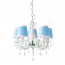 Κλασικός πολυέλαιος σε λευκό χρώμα με μεταλλικές λεπτομέρειες χρωμίου και γαλάζια πουά υφασμάτινα abat – jour με λευκό σιρίτι MACARON